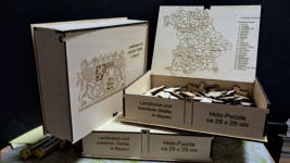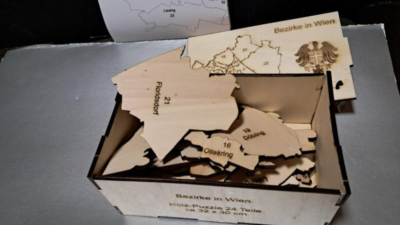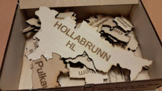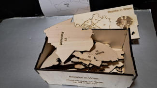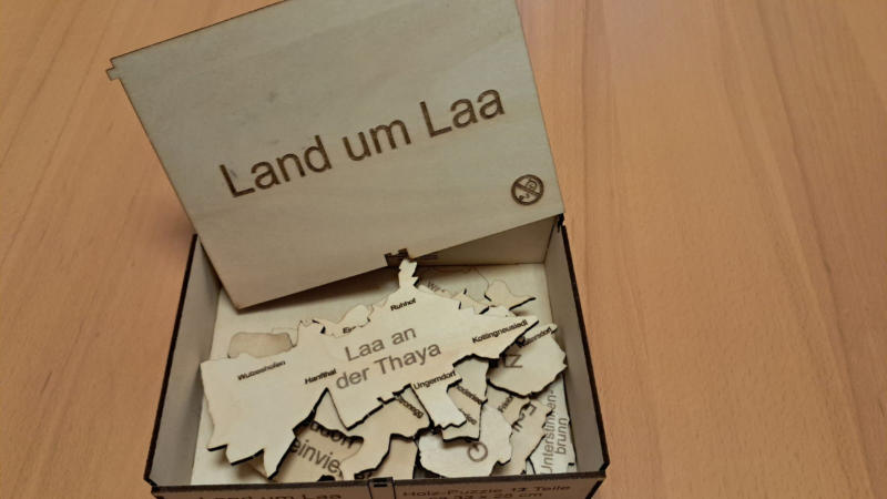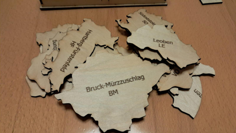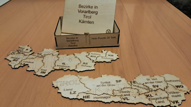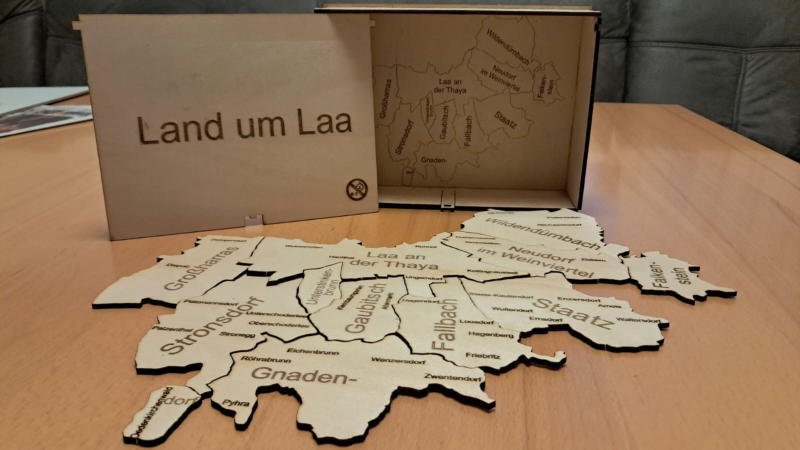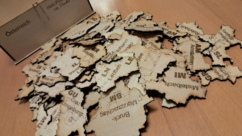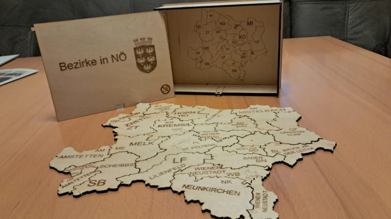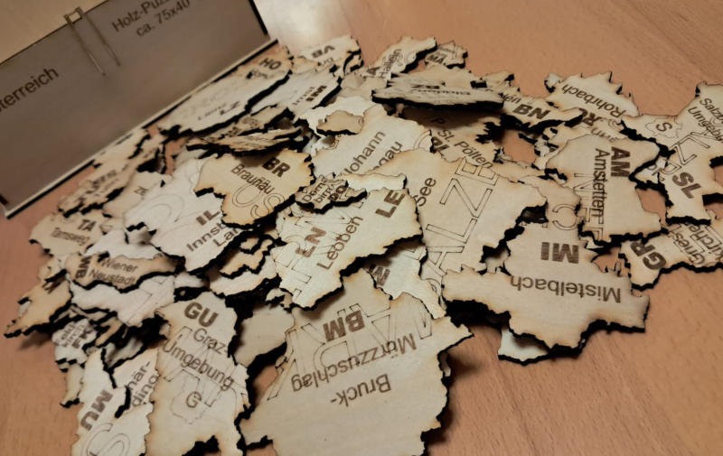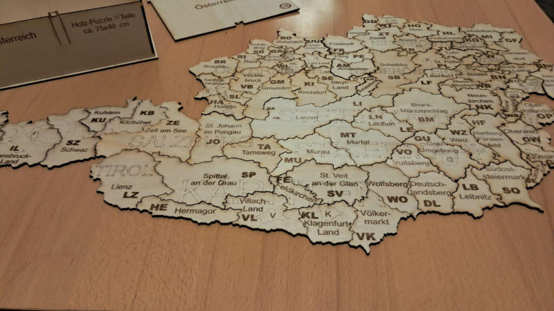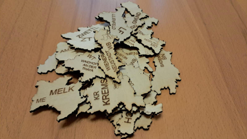 für jeden österreichischen Bezirk ist ein Puzzle ( siehe Bezirk Hollabrunn) geschnitten nach Gemeindegrenzen lieferbar