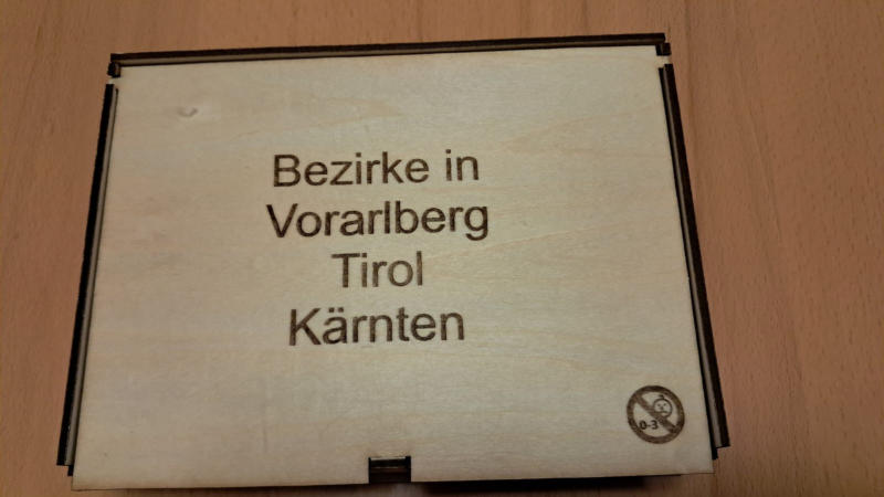 Österreich mit geschnittenen Bundesländern und eingravierten Bezirken